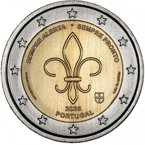 Officiële Portugese 2 euromunt uit 2025 in UNC-kwaliteit, met als thema: Altijd Alert, Altijd Paraat. Deze herdenkingsmunt eert de inzet en paraatheid van openbare diensten en hulpverleners in Portugal.