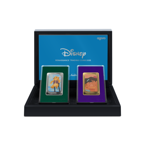 Celebrate the golden era of Disney with this exclusive Disney Renaissance Trading Coins sealed box. This 2025 release captures the magic of iconic films such as The Lion King, Aladdin, Beauty and the Beast, and more – brought to life in pure silver with a unique trading coin concept.