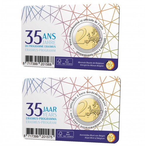 2x Belgie 2 euro 2022 Erasmus BU in coincard (FR + NL)
