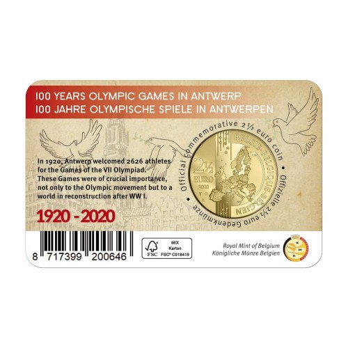 Belgie 2,50 euro 2020 Olympische Spelen Antwerpen BU in coincard