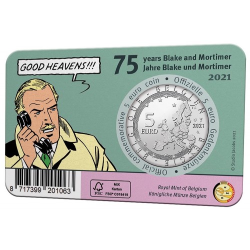 Belgie 5 euro 2021 Blake en Mortimer BU in coincard
