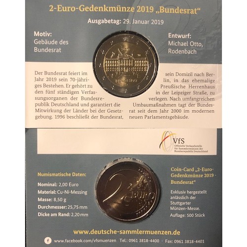 Duitsland 2 euro 2019 F Bundesrat BU coincard