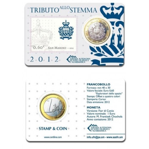 San Marino 1 euro + stamp 2012 BU - coincard nr. 02