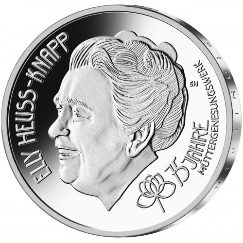 Officiële Duitse 20-euromunt 2025 in UNC-kwaliteit, uitgegeven ter ere van Elly Heuss-Knapp (1881-1952) – sociaal hervormster, politica en echtgenote van de eerste bondspresident van Duitsland. Zij richtte de “Müttergenesungswerk” op, een stichting die moeders ondersteunt en tot op heden actief is.