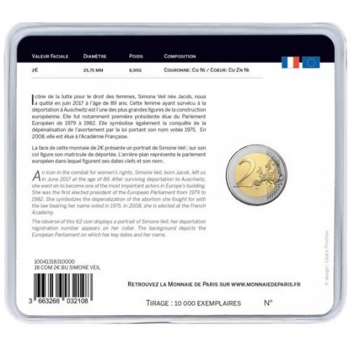 Frankrijk 2 euro 2018 'Simone Veil' BU in coincard