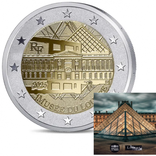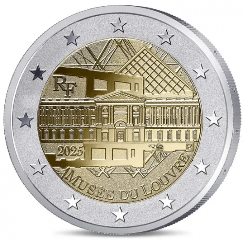 Het bekende Franse Louvre Museum in Parijs is een van de bekendste en grootste museums ter wereld met werken zoals de Mona Lisa, Venus de Milo en Winged Victory. Ter gelegenheid van dit museum heeft de Franse munt een speciale 2 euromunt geslagen: Frankrijk 2 euro 2025 Het Louvre.