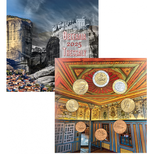 De Griekse BU-set 2025 staat in het teken van de regio Thessaly waar beroemde bergen te vinden zijn zoals Olympus en Othrys.