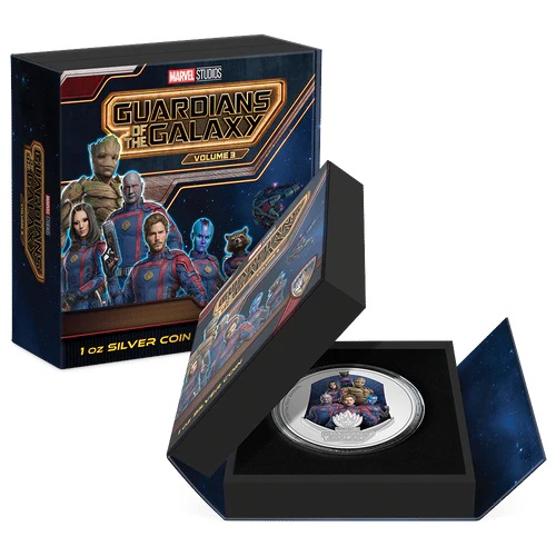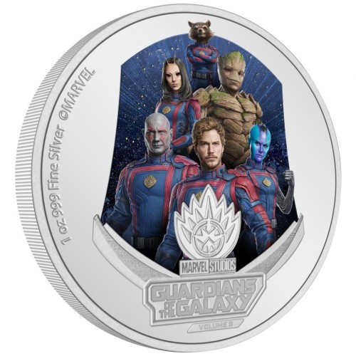- 1oz silver coin featuring the Guardians of the Galaxy as seen in the vol. 3 film 2023.