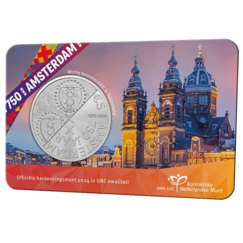Nederland 5 euro 2024 750 jaar Amsterdam - Sint Nikolaaskerk UNC in coincard
