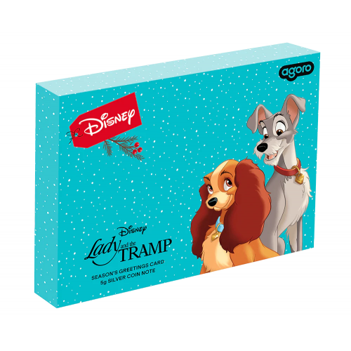 Introduce a heartfelt Christmas gift with the 2024 “Lady and the Tramp” silver coin note from Disney’s Season’s Greetings series. This 5 g pure silver (999) coin note features a festive family scene in colour, inspired by the iconic Disney classic, set within a card-style presentation. :contentReference[oaicite:0]{index=0}