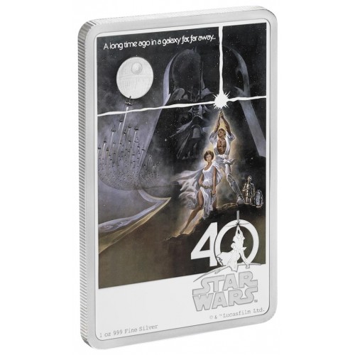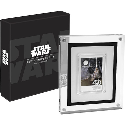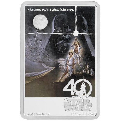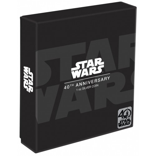 This striking, limited edition coin commemorates the 40th Anniversary of Star Wars which thundered onto the big screen on May 25, 1977.