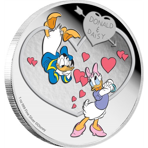 Tags: Disney, Valentijn, Liefde, Donald Duck, Katrien Duck, 1 oz zilver, Proof