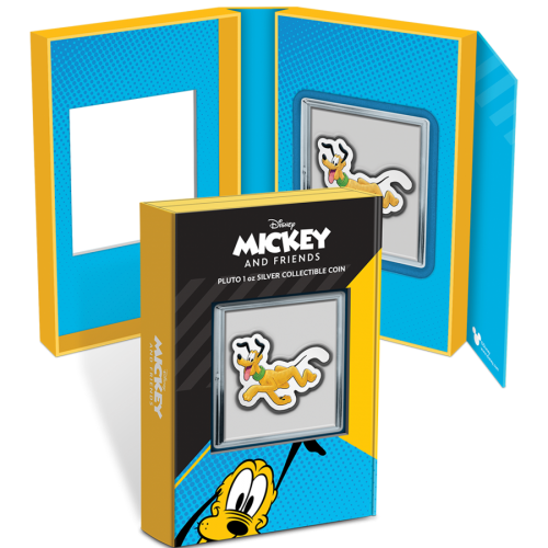The Disney Shaped Coin series continues with Mickey’s loyal companion, Pluto. Struck in 1 oz pure silver, this unique shaped coin captures Pluto’s cheerful personality in vibrant colour.