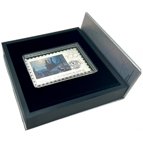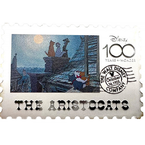 Celebrate The Aristocats (1970) with this charming stamp-shaped silver coin, issued for Disney’s 100 Years of Wonder. Featuring Duchess, Thomas O’Malley, and the kittens, it brings the Parisian adventure to life.