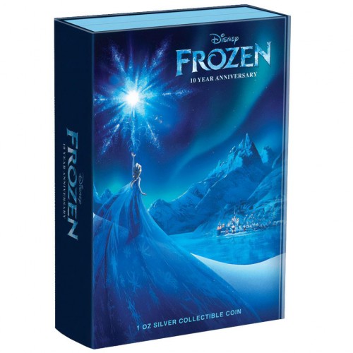 The reverse features Anna and Elsa in vibrant colour with the Frozen 10th Anniversary logo. The obverse depicts Queen Elizabeth II. Each coin is presented in themed anniversary packaging with a Certificate of Authenticity. Worldwide mintage limited to 10,000.
