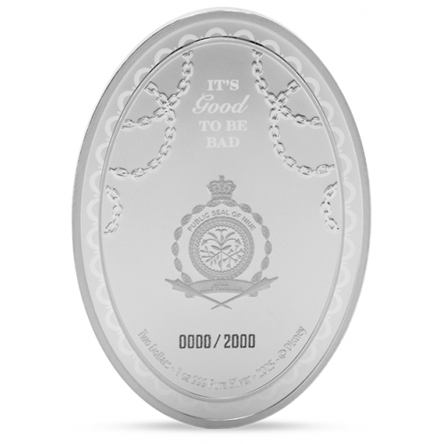 The fashionable fiend returns — Cruella de Vil from 101 Dalmatians (1961) stars on this elegant 1 oz oval silver proof coin. Her signature two-tone hair and bold style are brought to life in full colour, surrounded by dalmatian spots and silver accents. Limited to only 2,000 pieces worldwide, it’s the perfect tribute to one of Disney’s most iconic villains.