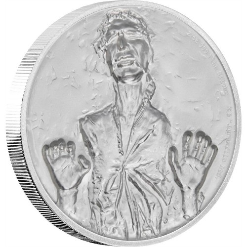 Ultra High Relief 2oz fine silver coin featuring one of the greatest heroes of the Rebellion, Han Solo, frozen in carbonite.