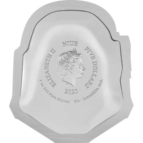 This unique coin follows the shape of one of the most well-known helmets - that worn by the notorious bounty hunter Boba Fett™. A weighty 2oz pure silver, this coin has been minted using ultra-high relief technology to create the striking detail, including the infamous dent!