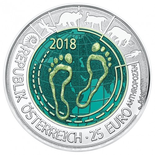 Tags: Oostenrijk 25 euro 2018, anthropoceen niob, zilver niob munt