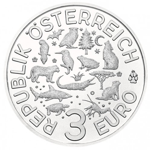 Oostenrijk 3 euro 2017: Dieren van de nacht - 2) de Tijger..