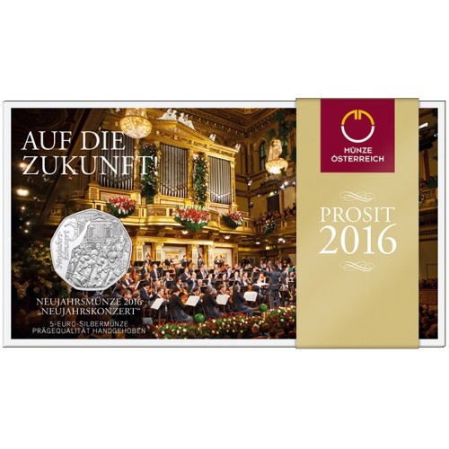 Tags: Oostenrijk 5 euro 2016, nieuwjaarsconcert zilveren munt, weense muziek herdenkingsmunt, oostenrijk herdenkingsmunt, zilver bu blister