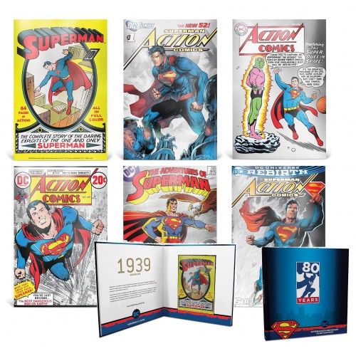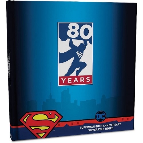Celebrate Superman's 80th Anniversary with a special Silver Coin Note Collection, which comes with a Collector's Album that includes six 5g pure silver coin notes featuring astonishing images of iconic Superman comic book covers through the ages.