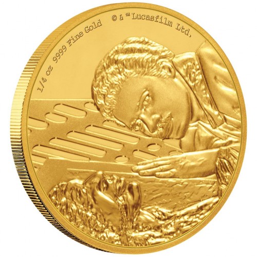 The 1/4 oz gold coin is placed inside in a high-quality coin case and Star Wars themed box. The Certificate of Authenticity is included in the coin case and shows the coin’s unique number in the mintage.