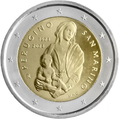San Marino 2 euro 2023 Perugino BU coin in blister