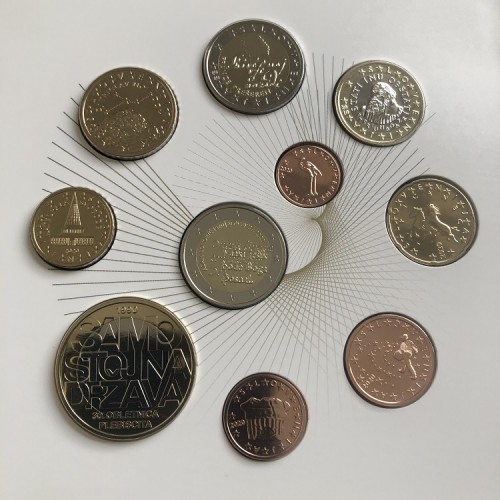 10 munten: 1 cent - 2 euro + 3 euro 'Onafhankelijkheid' + 2 euro CC 'Adam Bohoric'