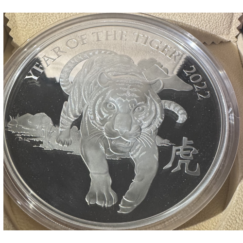 French: Royaume-Uni 2022 Année du Tigre 1 kilo argent Belle Épreuve, tirage limité à 38 exemplaires.