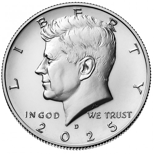 De Kennedy Half Dollar 2025 met muntteken D (Denver) is een klassieke Amerikaanse verzamelmunt in UNC-kwaliteit. Het muntteken bevindt zich op de voorzijde van de munt.