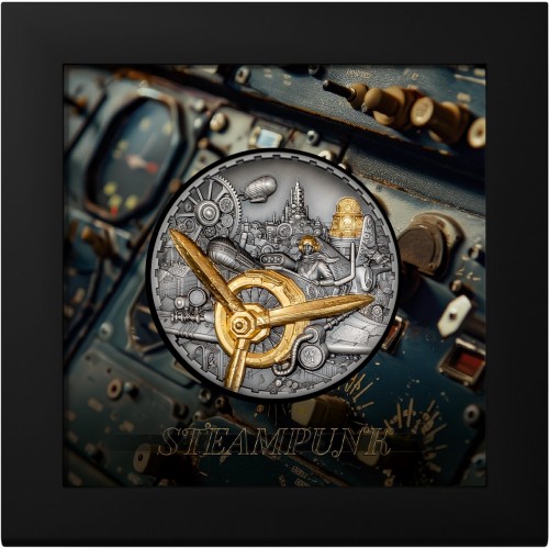 Deze indrukwekkende 3 oz zilveren munt maakt deel uit van de populaire Steampunk-serie en staat in het teken van Aviation. De munt combineert industriële vormgeving met retro-futuristische elementen en is uitgevoerd in proofkwaliteit met antique finish en gedeeltelijke vergulding. Dit is het zesde deel binnen de Steampunk-serie en zeer geliefd bij verzamelaars wereldwijd.