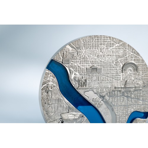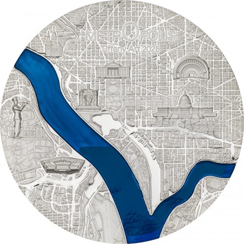 De iconische Tiffany Art Metropolis-serie keert in 2025 terug met een eerbetoon aan Washington D.C., de hoofdstad van de Verenigde Staten. Deze 3 oz zware zilveren munt toont een prachtig reliëf van de stad, inclusief kenmerkende bouwwerken zoals het Capitool en de Obelisk. In het ontwerp is het beroemde Tiffany-glasraam verwerkt – het kenmerk van deze exclusieve serie.